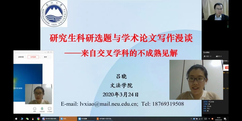 为了丰富疫情期间广大研究生的课余生活,落实“停课不停学”相关要求,3月24日18:30,文法学院在钉钉平台上开展了以“研究生科研选题与学术论文写作漫谈”为主题的线上讲座,讲座由研究生辅导员姜冬主持,文法学院教授吕晓主讲,近200名研究生线上收看了此次讲座。
