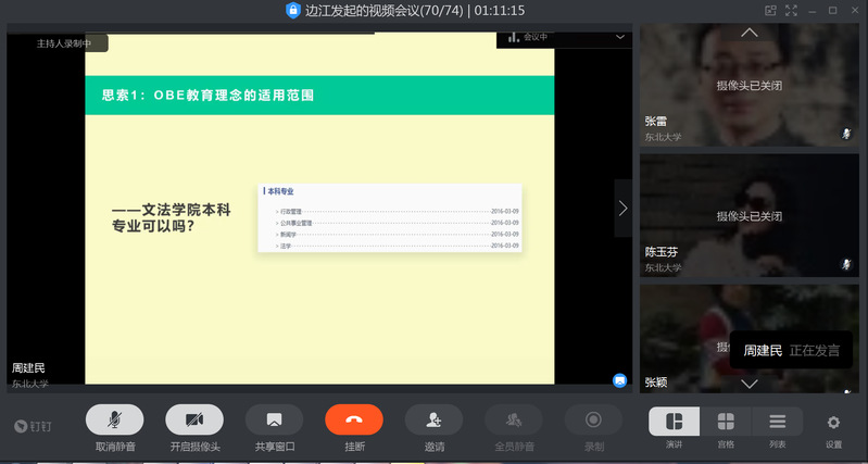 为深化教师对OBE教育理念的理解,并结合我院非工科专业认证工作,公共事务管理研究所周建民老师于4月22日下午14:30利用钉钉平台为全院教师作了“OBE教育理念在我国高校办学实践中应用的思考”学术报告。报告会由副院长宋戈主持。
