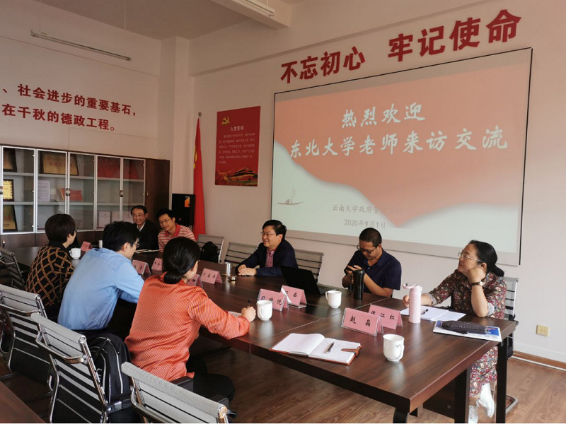 东北大学文法学院公共事业管理专业与云南大学政府管理学院公共事业管理专业是我国最早的建设公共事业管理专业的学科,是专业建设的对标单位。在座谈会上,双方围绕支部党建、办学理念、专业建设、人才培养、学术团队建设、教学教务管理、专业评估、本科专业双万建设等展开了广泛的交流。双方相互介绍了各自专业的建设经验并就当前专业建设的困境进行深入的沟通。通过交流云南大学公共事业管理专业教师认为我院本科人才培养全程导师制与团队凝练的社区管理研究特色给与了高度评价,云南大学公共事业管理专业人才培养中对学生毕业实习的安排也给了我们很大启发。会议持续近四小时,会以后双方表达了对未来建立支部建设和专业建设长期关系的期许。