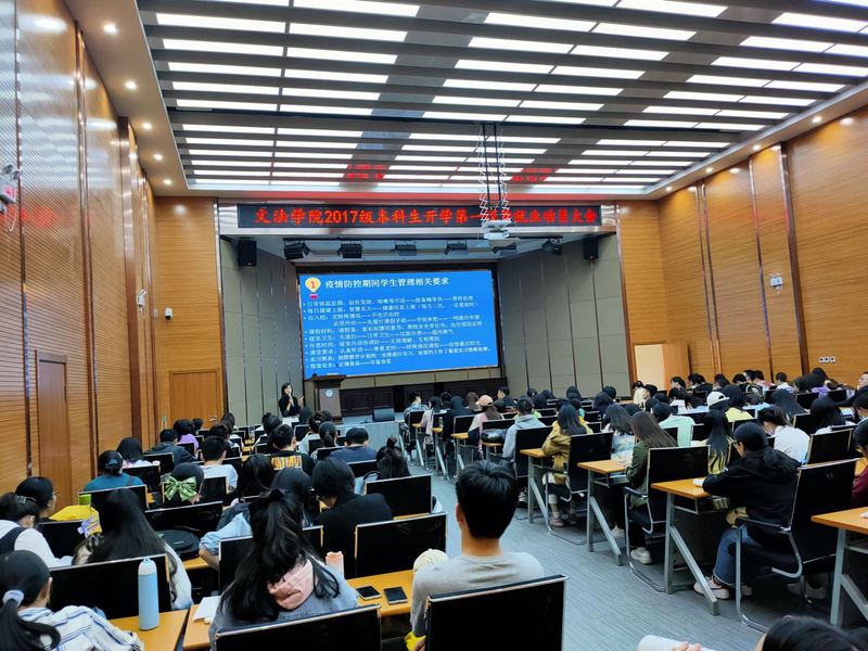 2020年9月18日,文法学院2017级本科生“开学第一课”暨年级大会在文管B230萃升会议室召开,院团委书记兼2017级本科生辅导员蔡晓淇主持、主讲,2017级全体本科生出席。