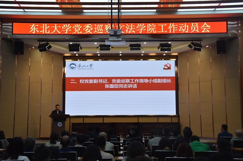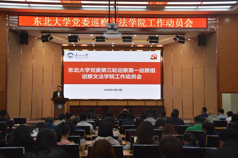 10月10日,东北大学党委第三轮巡察第一巡察组巡察文法学院工作动员会在文法学院萃升学术报告厅召开,校党委副书记、党委巡察工作领导小组副组长张国臣同志,校纪委副书记、党委巡察工作领导小组成员、党委巡察工作办公室主任王剑同志,党委第一巡察组全体成员和巡察办全体人员出席会议,文法学院全体教职工、学生代表等130余人参加会议。