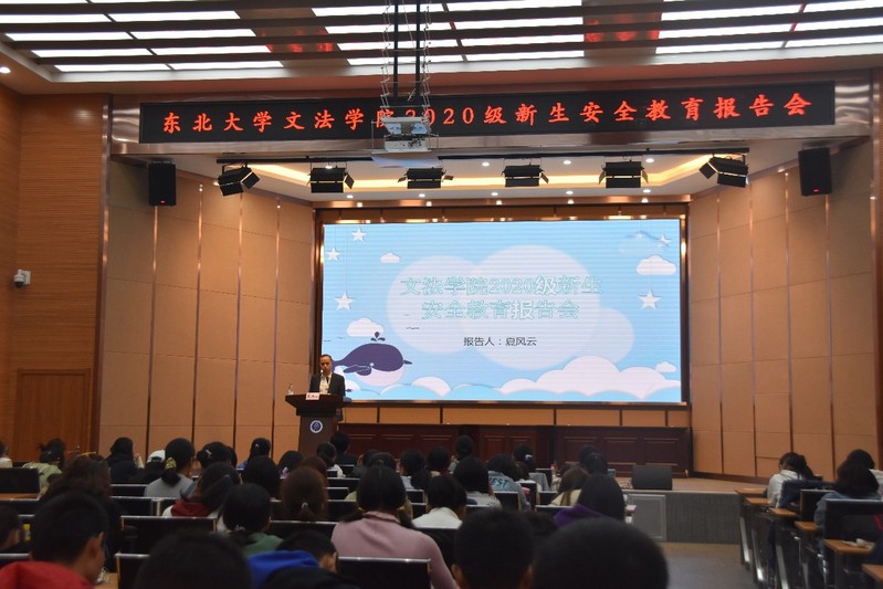2020年9月29日上午10时40分,东北大学文法学院2020级新生安全教育报告会在文管学馆B230举行,东北大学文法学院党委副书记、副院长夏风云参会,2020级本科生辅导员周志平主持。