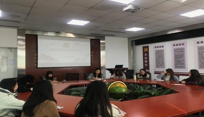 2020年10月23日12:30,文法学院文硕2001党支部在文管A202召开党员大会,13名党员参会,党支部书记张茜宁主持会议。