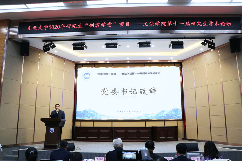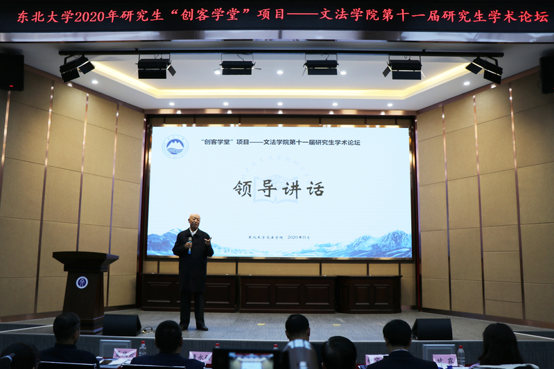 为拓宽学术视野,促进学术交流,提高文法学院研究生的科研能力和创新精神,2020年11月11日13:30,在东北大学研究生院“创客学堂”项目的支持下,东北大学文法学院第十一届研究生学术论坛于文管学馆B230正式拉开帷幕。国家科技政策东北研究中心主任、教育部战略研究基地、东北大学科技政策研究中心主任娄成武,东北大学研究生院教育管理办公室主任欧阳恒岳,文法学院党委书记隋永强,党委副书记、副院长夏风云,副院长、东北大学公共政策研究院院长杜宝贵,部分教师代表及2020级全体硕士研究生参加此次论坛。