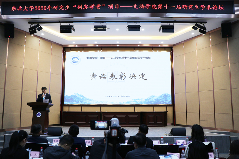 观看视频后,杜宝贵宣读了《关于表彰东北大学研究生“创客学堂”项目之文法学院第十一届研究生学术论坛优秀论文的决定》,并由与会嘉宾为获奖学生颁奖。