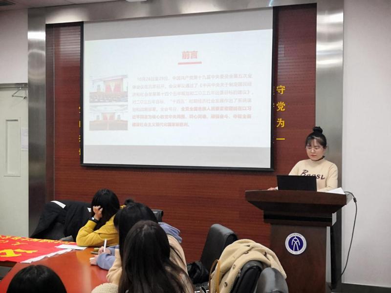 11月10日17:00,文硕1902党支部于文管学馆A202开展“学习党的十九届五中全会精神”主题党日,会议由党支部书记杨红玉主持,文硕1902党支部16名党员和8名积极分子参加会议。