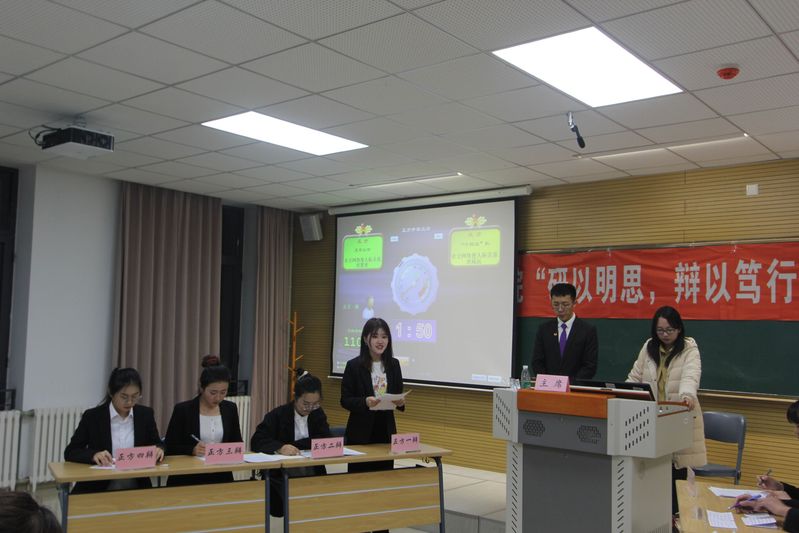 2020年11月19日晚,由东北大学文法学院研究生会举办的“研以明思,辩以笃行”研究生辩论赛初赛在一号教学楼B107顺利举行。本次比赛邀请文法学院研究生会主席张润阳、2019年文法学院“言思角逐,研之有理”研究生辩论赛一等奖代表刘斐以及优秀辩手周智琦担任评委,辩论赛主席由杨旭东担任。