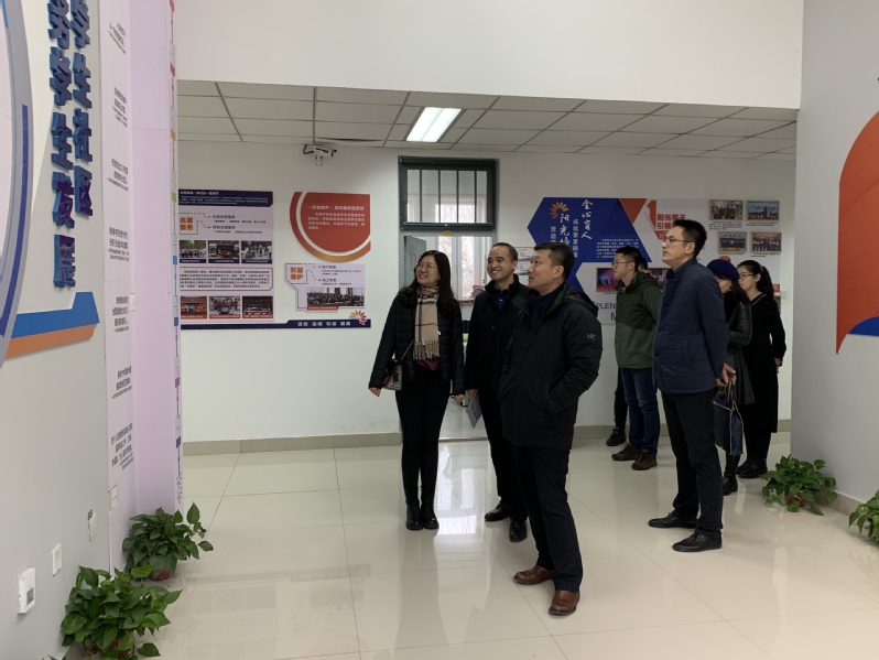 调研座谈前,马天威一行前往文法学院学生工作办公区,参观了文法学院“一站式”学生社区文化建设长廊。