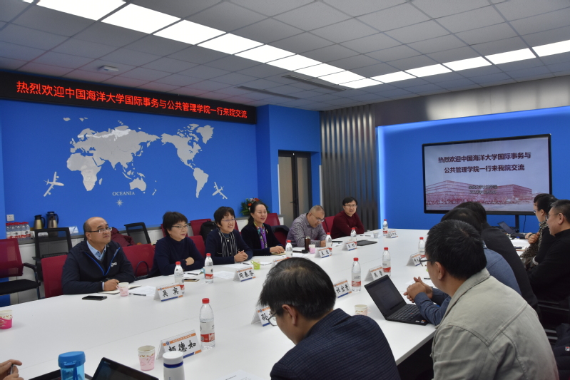 2020年12月1日,中国海洋大学国际事务与公共管理学院党委书记庄岩、院长王琪一行6人来学院开展调研。上午9:00,在襄平会议室举行座谈会,院长张雷,党委书记隋永强,副院长宋戈、杜宝贵、李丹,纪委书记、党委副书记孙宏伟参会。