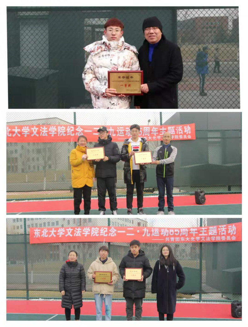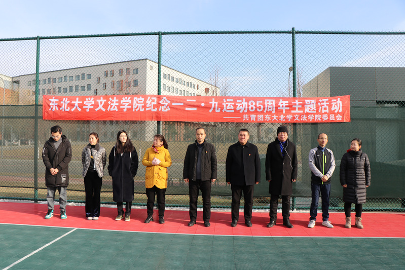 为纪念“一二·九”抗日救亡运动,营造爱国爱校的优良学习氛围,12月2日13:00,文法学院纪念一二·九运动85周年活动之师生趣味运动会在浑南校区室外篮球场顺利举行。文法学院党委书记隋永强,党委副书记兼副院长夏风云,新闻学系顾宁,法学系赵进华,公共事业管理系赵晶,土地管理研究所刘馨蕊、刘蜀涵,文法学院团委书记兼2017级本科生辅导员蔡晓淇,2020级本科生辅导员周志平出席了本次活动。