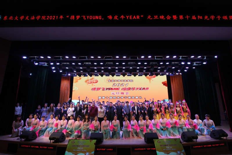 2020年是不平凡的一年,在这一年里,文法人将拼搏奋进、砥砺前行的精神贯彻到底;2021年,希望与梦想同在,机遇与挑战共存,站在新的起点,文法人必将不忘初心,奋发向上,成就新的辉煌!至此,东北大学文法学院2021年“携梦飞young,嗨皮牛year”元旦晚会暨第十届阳光学子颁奖仪式圆满落幕。