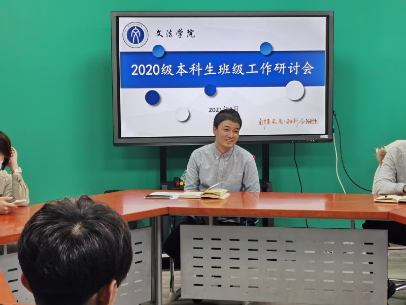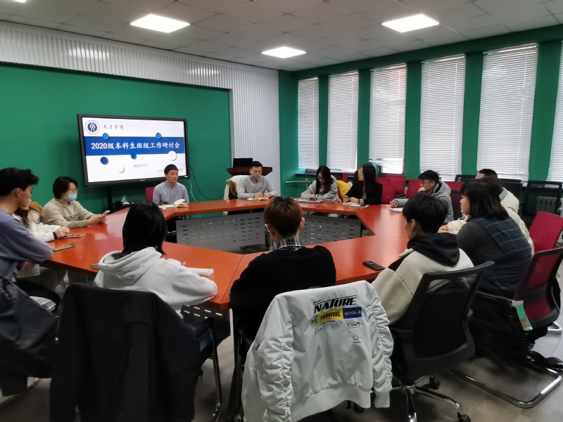 3月8日下午2:30,文法学院2020级本科生于文管学馆A211召开班级工作研讨会。2020级本科生辅导员彭舟、周志平,兼职辅导员张茜宁、赵界,2020级各班班长、团支书参会。