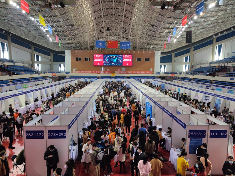 3月25日,东北大学2021届毕业生春季双向选择洽谈会在刘长春体育馆和羽乒馆举行,近400家企业为毕业生提供有效岗位需求2.5万余个。