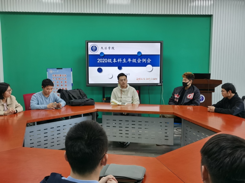 2021年3月29日下午2:30,文法学院2020级年级会例会在文管学馆A211召开,2020级本科生辅导员周志平老师、2020级年级会成员和2020级部分团支书参会,会议由周志平老师主持。
