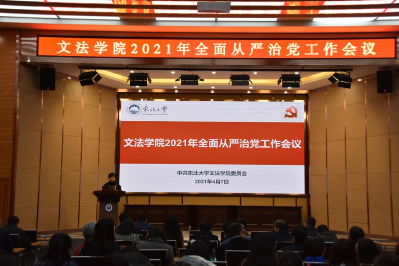 4月7日,在文管B230会议室,文法学院召开2021年全面从严治党工作会议,深入学习贯彻习近平总书记在十九届中央纪委五次全会上的重要讲话和五次全会精神、教育系统全面从严治党工作视频会议精神以及学校2021年全面从严治党工作视频会议精神,总结2020年学院全面从严治党和党风廉政建设工作,部署安排2021年学院全面从严治党和党风廉政建设重点工作任务。会议在浑南校区文管B230学术报告厅召开,全院教师和学生党员、积极分子参加会议。学院党委委员副院长李丹主持会议。
