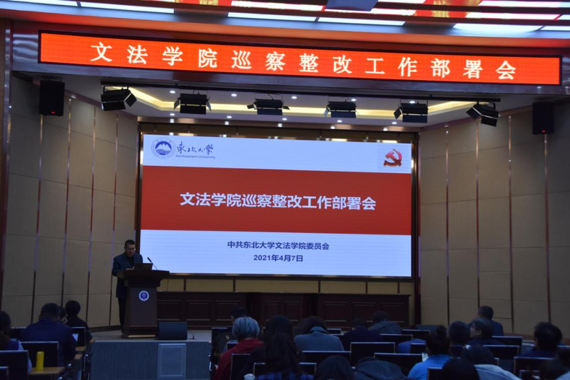 2021年4月7日下午2点,文法学院在文管学馆B230召开巡察整改工作部署会议,文法学院党委书记隋永强对学院巡查整改工作进行部署,学院全体教师、学生党员和入党积极分子参加。