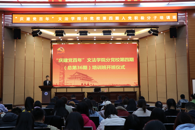 4月13日12:45,“庆建党百年”文法学院分党校第四期(总第36期)入党积极分子培训班开班典礼于文管学馆B230举行。东北大学正处级组织员、党委组织部副部长姜玉原,文法学院党委书记、分党校校长隋永强,文法学院党委副书记、纪委书记孙宏伟,文法学院党委副书记、副院长、分党校副校长夏风云应邀出席典礼。会议由彭舟主持。