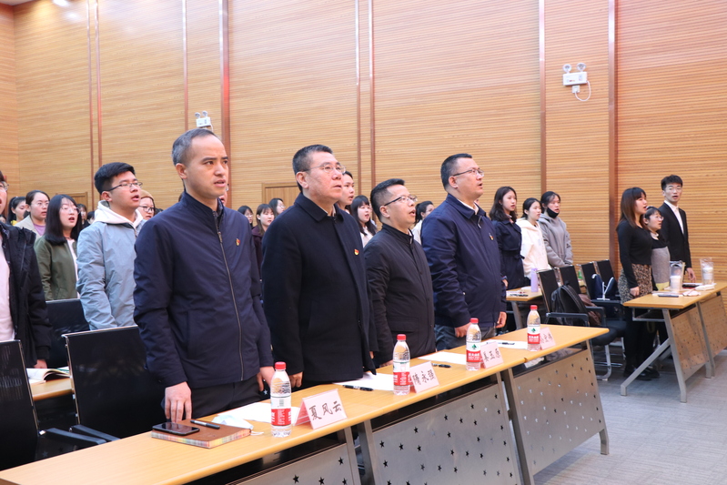 典礼在雄壮的国歌声中拉开帷幕。首先,文法学院党委组织员彭舟介绍本期培训班纪律要求及课程安排。接着,来自法学专业的2019级本科生孔祥俊同学代表全体学员发言,他对学院党委举办此次培训班表示感谢,并表示会严于律己,认真完成培训任务。最后,隋永强强调各位学员要端正入党动机,提升自身政治素养,向中共党员标准看齐。