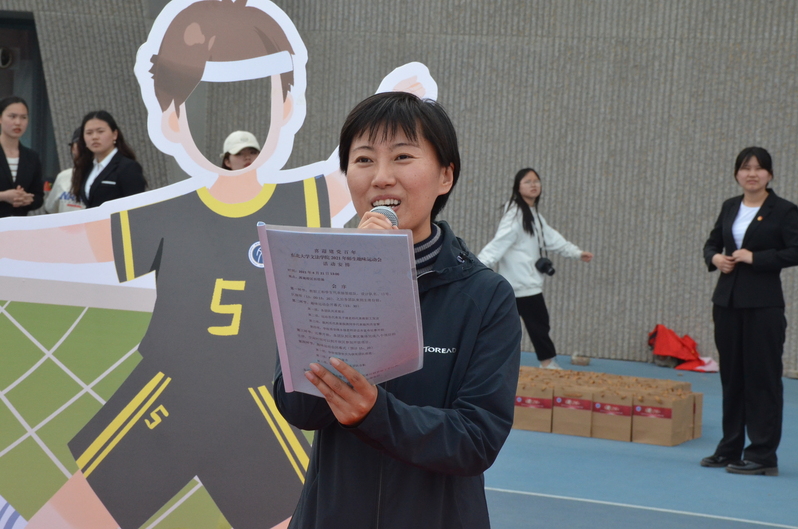 4月21日下午1:00,喜迎建党百年——东北大学文法学院2021年师生趣味运动会于东北大学浑南校区一号田径场举行。文法学院全体教职工以及来自不同年级的学生代表参与活动,活动由教师代表蔡晓淇和学生代表周志平主持。