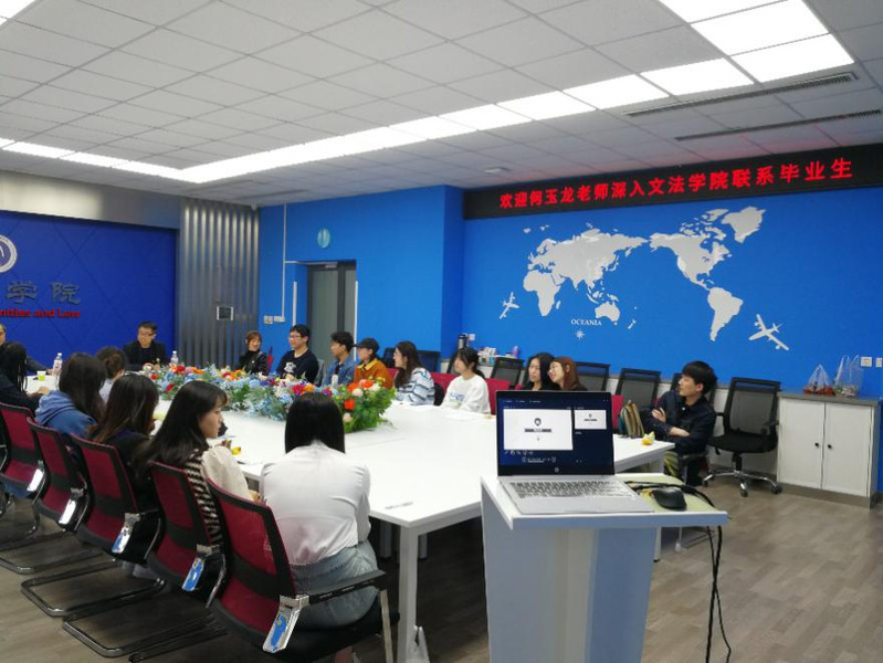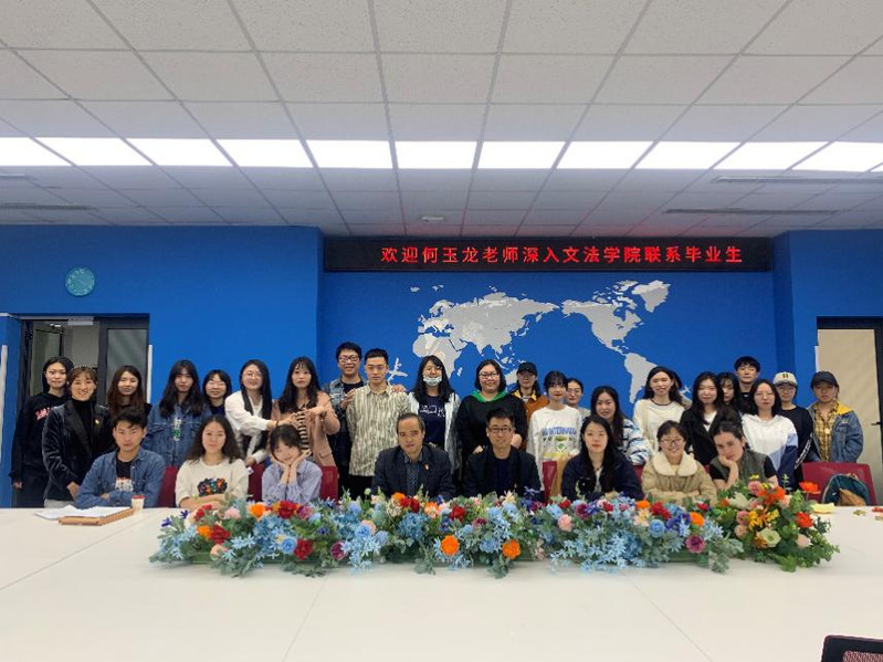 2021年5月12日14点30分,文法学院新闻1701班于文管楼A210襄平会议室开展“新生记,毕业季”师生交流会。新闻1701班对接领导干部、东北大学继续教育学院党委副书记兼副院长何玉龙老师,文法学院党委副书记兼副院长夏风云老师,文法学院团委书记、2017级本科生辅导员蔡晓淇老师与新闻1701班全体本科生参加了本次交流会。