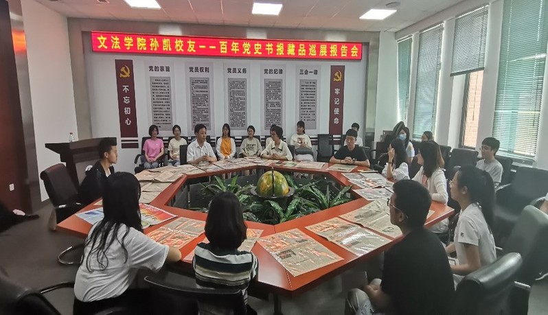 东北大学文法学院1996级校友、全国雷锋专题藏友联谊会会员、中国报业协会集报分会理事、辽宁省雷锋研究会理事、辽宁省集报协会副秘书长孙凯受邀为文法学院师生做百年党史书报展览讲解,东北大学党委宣传部副部长李晨、文法学院党委副书记、副院长(兼)夏风云、文法学院副院长李丹及文法学院师生参加巡展宣讲。本次展览由文法学院党委书记隋永强主持。