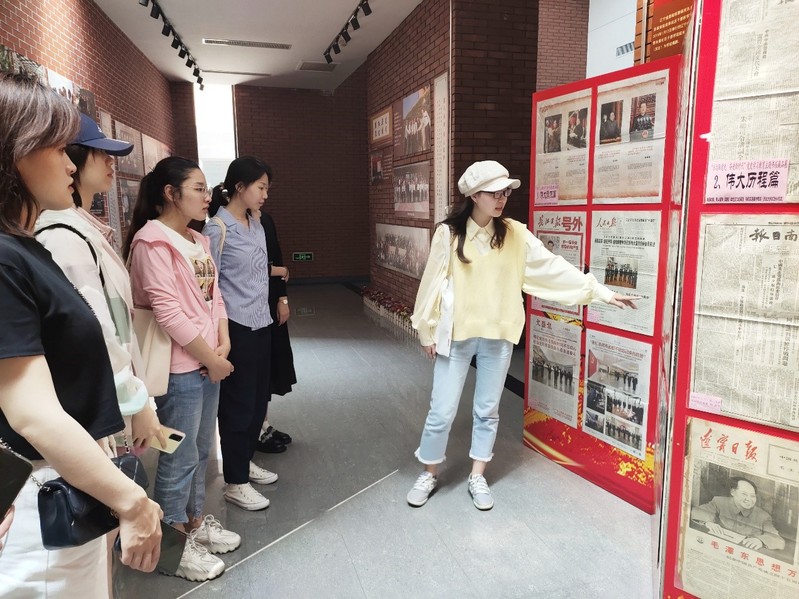 2021年6月11日,文硕2003党支部于文管学馆一楼开展“百年党史书报藏品”观展学习活动,支部书记朱鑫为支部全体党员做百年党史书报展览讲解。