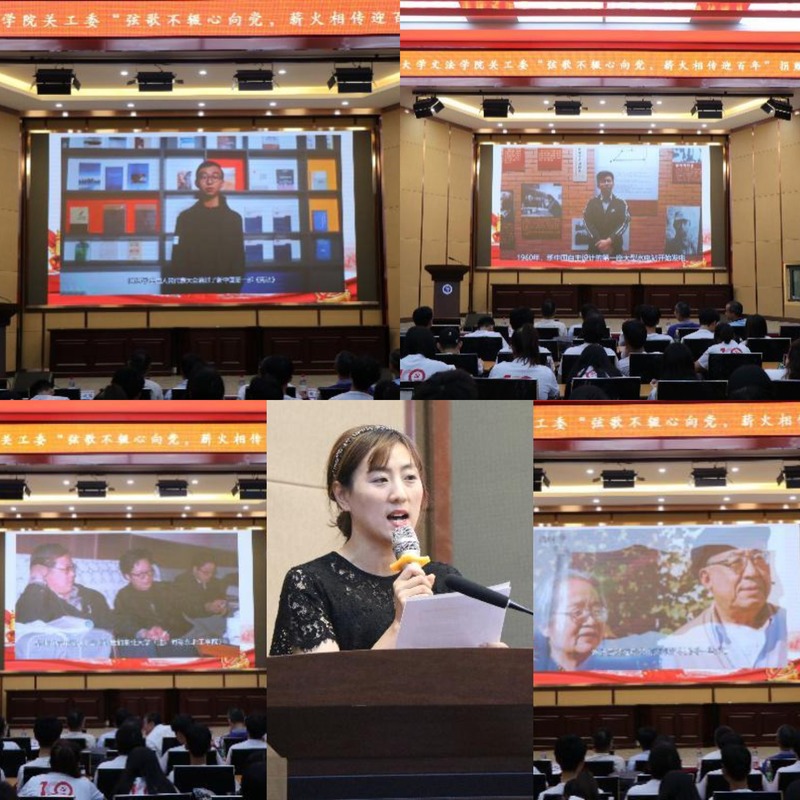 为献礼建党百年,赓续红色精神,6月23日下午,文法学院在文管学馆萃升学术报告厅隆重召开“弦歌不辍心向党,薪火相传迎百年”捐赠仪式,原文法学院社会保障研究所所长、文法学院教授、关心下一代工作委员会(以下简称“关工委”)委员刘武,原文法学院党委书记、文法学院关工委副主任杨建春,文法学院院长、关工委主任张雷,文法学院党委书记、关工委主任隋永强,文法学院党委副书记兼副院长、关工委副主任夏风云以及文法学院学生代表参会,会议由文法学院团委书记、关工委秘书长蔡晓淇主持,文法学院百名团员青年代表参与活动。