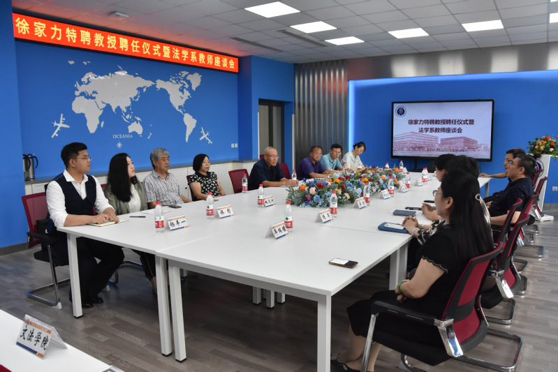 7月13日上午,文法学院在文管学馆A210会议室举办徐家力特聘教授聘任仪式,文法学院院长张雷、党委书记隋永强、副院长李丹以及法学系全体教师出席了本次聘任仪式。