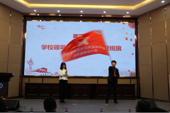 第十五期培训班班长付嘉伟宣布本期“青马工程”的分组名单,各组成员用响亮的口号彰显了他们的昂扬斗志。随后,东北大学团委副书记张忠英为文法学院第十五期“青马工程”培训班授旗,全场响起热烈掌声。