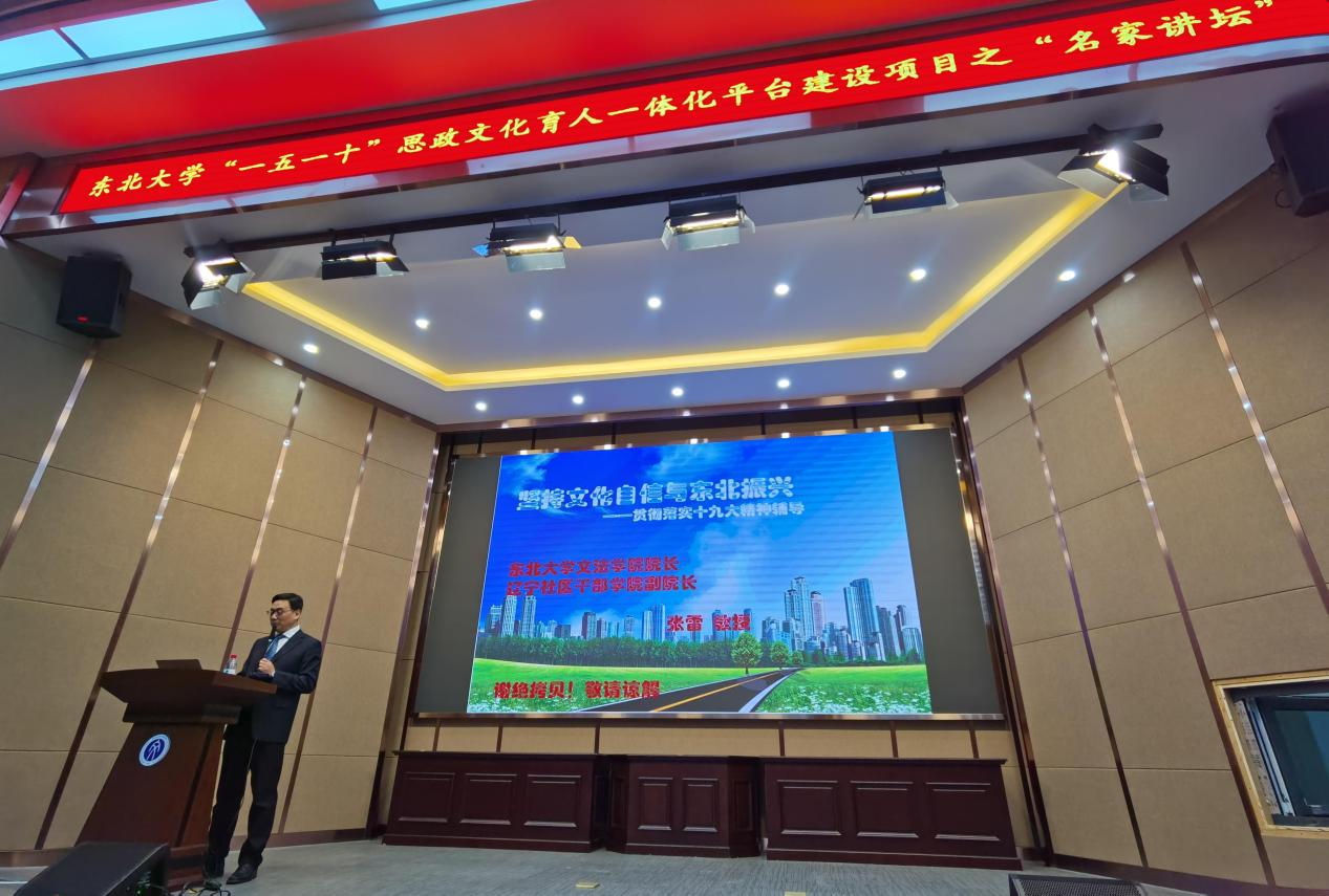 10月21日,东北大学“一五一十”思政文化育人一体化平台之“名家讲坛”活动暨院长萃升报告会于浑南校区文管学馆萃升学术报告厅举行。报告由东北大学文法学院院长、跨文化战略研究院院长张雷主讲,文法学院学生工作办公室相关同志、2021级全体本科生参会。