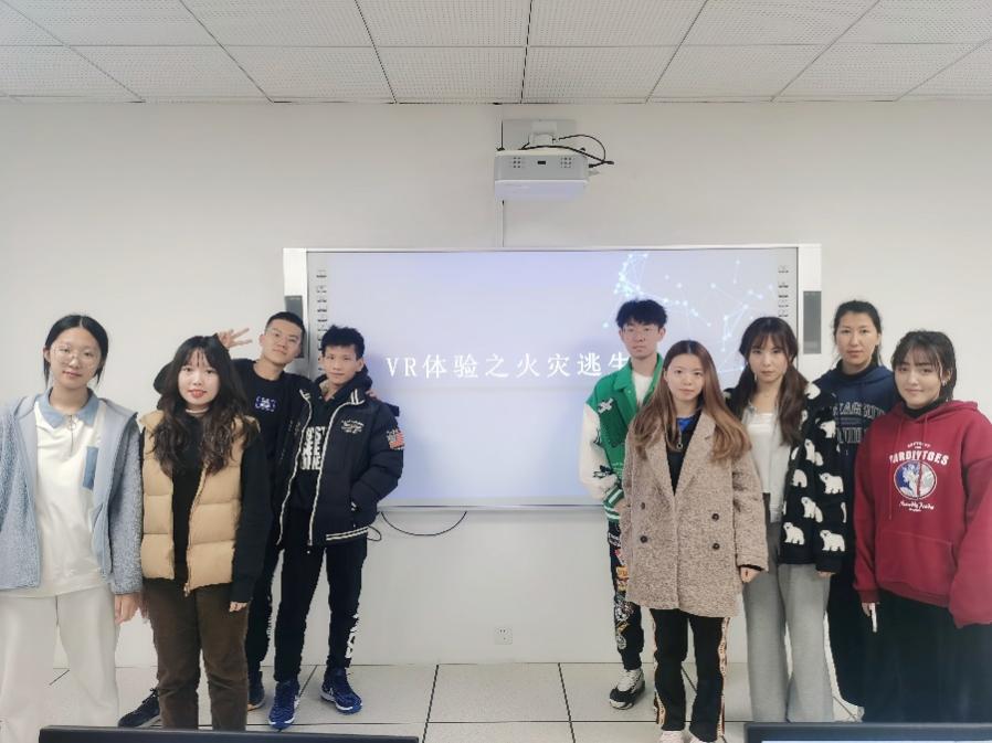 活动开始后,同学们置身于火灾的虚拟场景之中,按照电脑上显示的提示进行操作,摆出了各种姿势,在学姐的帮助下都完成了火灾逃生的任务。最后大家合影留念。