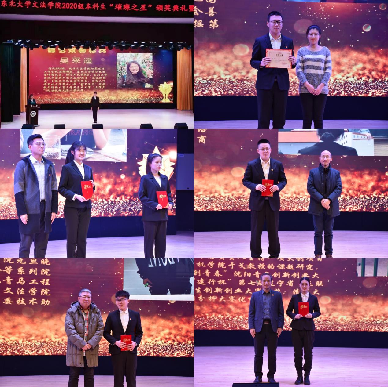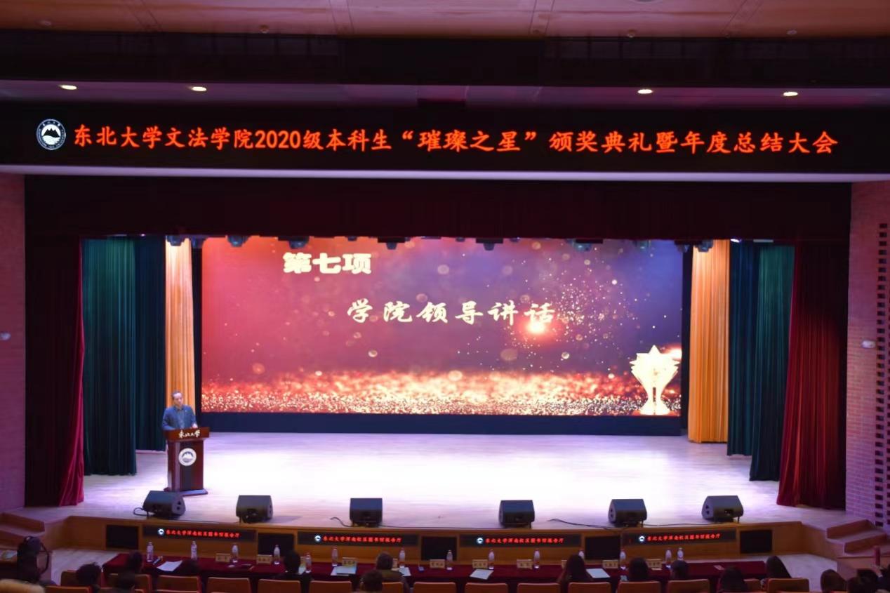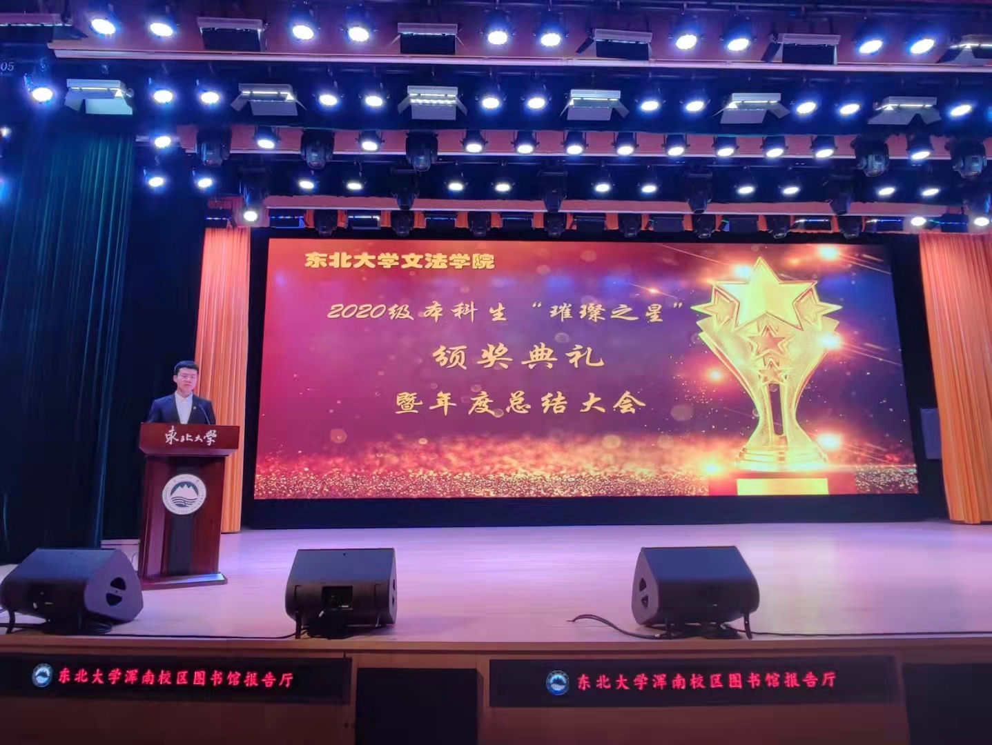 12月23日14:00,文法学院2020级本科生“璀璨之星”颁奖典礼暨年度总结大会在浑南校区图书馆报告厅顺利召开。文法学院党委副书记兼副院长夏风云,新闻学系主任、新闻2001班班导师顾宁,法学2001班班导师赵进华,团委书记兼2020级本科生辅导员蔡晓淇,研究生辅导员、2018级本科生辅导员姜冬,2021级本科生辅导员周志平及学院兼职辅导员出席本次大会。