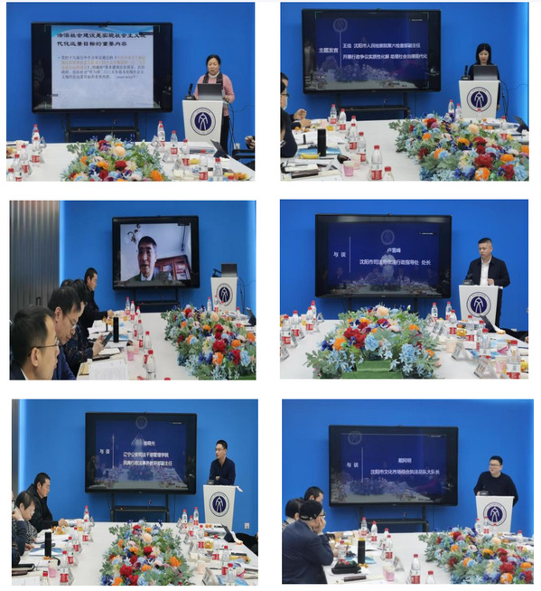 会议第四项,“以法治政府建设助推社会治理现代化”学术研讨会。学术研讨分为主题发言与交流两个环节。沈阳师范大学法学院教授崔红、沈阳市人民检察院第六检察部副主任王佳、辽宁安行律师事务所创始合伙人李宗胜三位专家做主题发言。崔红教授表示社会治理中存在自治领域,自治领域仍存在困境并对此提出对策和建议。王佳检察官分享了检察机关开展行政争议实质性化解助力社会治理现代化的创新经验。李宗胜律师以生动的实例阐释了宪法在社会治理现代化中的作用。在交流环节,沈阳市司法局依法行政指导处处长卢雪峰、辽宁公安司法管理干部学院民商行政法实务教研部副主任徐晓光、沈阳市文化市场综合执法总队大队长戴阿明分别分享了学术观点和工作感悟。
