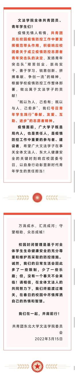 图12、图13 《致文法学院团员、青年学生的防疫倡议书》