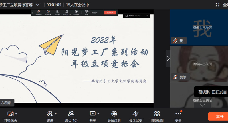 2022年3月29日18:10,文法学院“阳光梦工厂”系列活动年级立项竞标会通过钉钉平台顺利开展。文法学院团委书记蔡晓淇、学院兼职辅导员、文法学院学生科学技术协会成员以及各年级活动负责人参与本次活动。