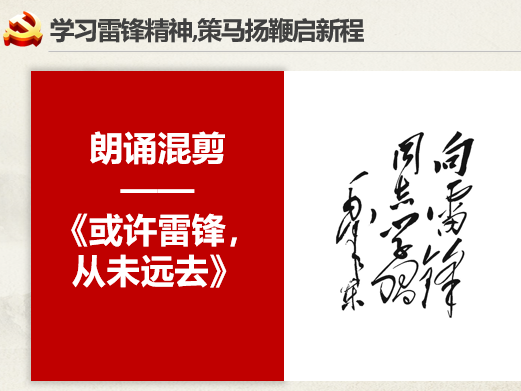 土管2001团支部以“学习雷锋精神,策马扬鞭启新程”为基点,以“你真的了解雷锋吗”为切入点,再次回顾了雷锋同志的生平事迹与其熠熠闪光的“螺丝钉精神”。“我们既要学习雷锋的精神,也要学习雷锋的做法,把崇高理想信念和道德品质追求转化为具体行动,体现在平凡的工作生活中,作出自己应有的贡献,把雷锋精神代代传承下去。”土管2001支部以朗诵混剪《或许雷锋,从未远去》为献礼,表达了支部团员青年对雷锋同志的敬仰惋惜与自我对标“雷锋精神”的内在要求。