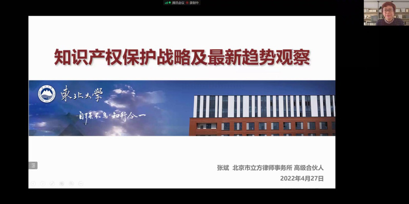 2022年4月27日下午,文法学院通过腾讯会议举办线上专题讲座,文法学院优秀校友、北京市立方律师事务所高级合伙人张斌律师做客阳光论坛,为我校师生作《知识产权保护战略及最新趋势观察》主题报告。近90名师生在线上听取了报告,文法学院法学系主任隋军老师主持了本次讲座。