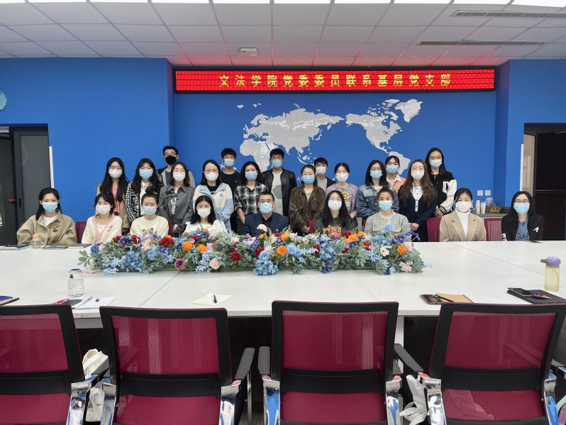 2022年4月27日上午10:00,文法学院党委书记隋永强到文硕2002党支部参与主题党日,本次主题党日于文管A210会议室(线下)与钉钉平台(线上)同步开展,支部全体党员及入党积极分子参加本次学习。