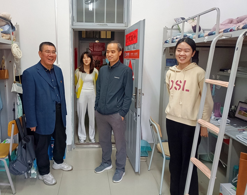 5月1日,文法学院党委书记隋永强,党委副书记、副院长(兼)夏风云,团委书记兼2020级本科生辅导员蔡晓淇,研究生兼2018级本科生辅导员姜冬深入学生寝室,走访慰问在校学生。