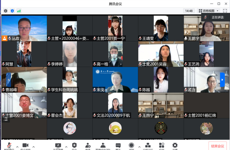 2022年5月21日,文法学院土地资源管理2001班心理主题班会通过腾讯会议形式开展,文法学院副院长、土地资源管理系教授宋戈深入班级,与同学们开展深入交流、互动。文法学院团委书记兼2020级本科生辅导员蔡晓淇及土管2001班全体同学参加活动。