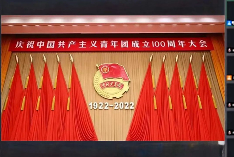 团支部成员观看“庆祝中国共产主义青年团成立100周年大会”视频