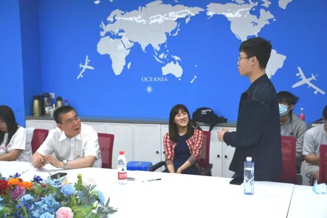 2022年5月23日16:00,法学2001团支部于文管学馆A210召开“青春心向党·建功新时代”主题团日活动,文法学院党委书记隋永强深入班级,文法学院团委书记兼2020级本科生辅导员蔡晓淇与支部28名同学参与本次团日。本次团日中同学们通过创建学习小组进行研讨、“四史”知识竞答、观看建团百年献礼视频、研读科学家事迹等多种形式,学深悟透习近平总书记系列重要讲话精神。最后,隋永强书记亲切地询问了同学们近期的学习与生活情况。同学们与隋书记积极互动交流,并感谢学院领导与老师疫情期间的辛苦付出与温暖陪伴。