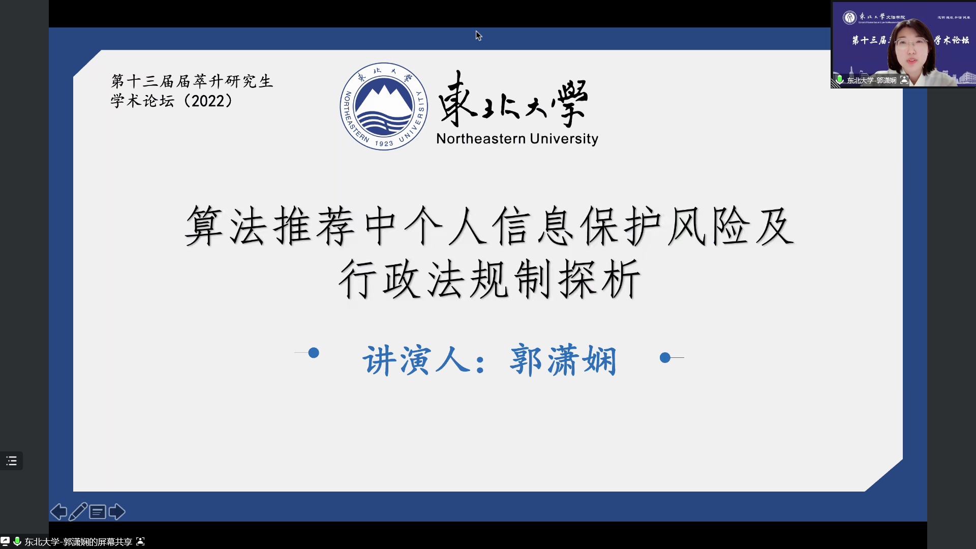 在论坛学术报告环节中,东北大学郭潇娴、东北大学杨扬、复旦大学王寅、东北大学刘源依次进行了学术报告,为大家带来了一场精彩的学术盛宴。