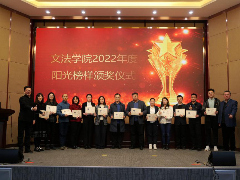 3月15日下午2:00,文法学院2022年度“阳光榜样”颁奖仪式在浑南校区文管学馆B230会议室举行,文法学院全体教职工参会,会议由副院长李丹主持。
