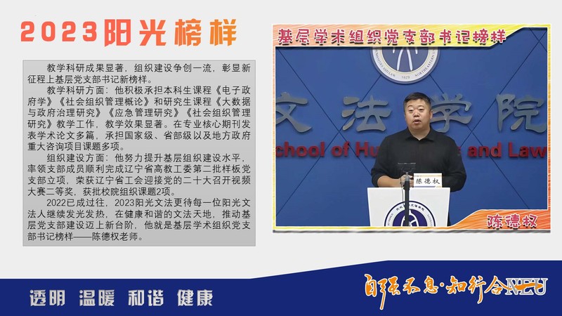 文法学院2022年度基层学术组织党支部书记榜样:陈德权