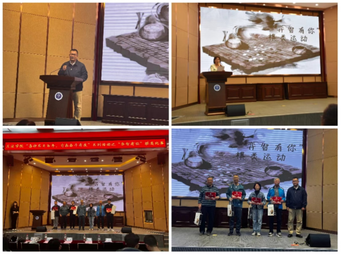 颁奖环节,蔡晓淇宣读获奖名单,马勇、苏焕玉、周实、王海涛为获奖同学分批次颁奖,孙宏伟为退休教师颁发特别参与奖并代表学院讲话,他对退休教师的到来表示欢迎和感谢,表达了学院对退休教师的关心关注,并从棋类运动对人心智成长的重要作用出发,鼓励同学们课业之余陶冶情操,培养高尚人格,做“文明其精神,野蛮其体魄”的积极践行者,在棋类运动中获得乐趣,绽放青春之花。