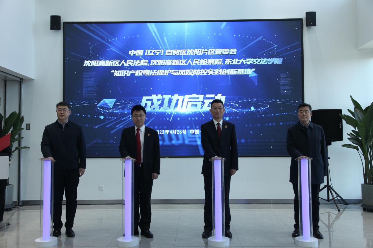 继2023年4月7日联动共建“知识产权司法保护及风险防控创新基地”筹备会后,4月26日“世界知识产权日”当天,东北大学文法学院与沈阳高新区检察院、中国(辽宁)自贸区沈阳片区管委会、沈阳高新区人民法院组织了“知识产权司法保护与风险防控实践创新基地”四方启动仪式,并在仪式后举办了“知识产权服务振兴新突破理论与实践研究”主题论坛。