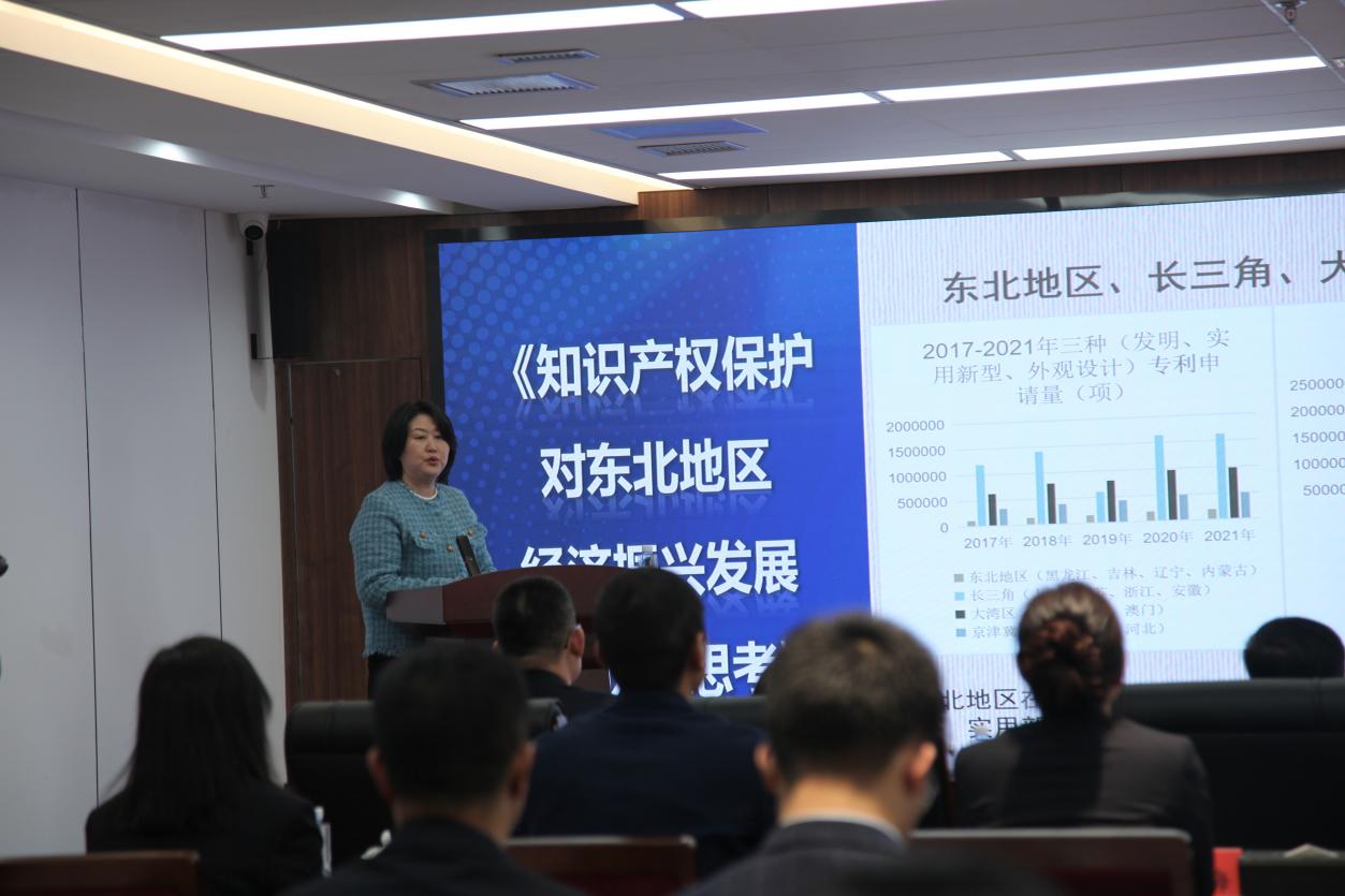 东北大学文法学院法学系主任隋军,以“知识产权保护对东北地区经济振兴发展的现状与思考”为题做主题发言,通过与其他经济带的对比分析了东北地区知识产权保护的现状,指出了东北地区经济振兴所存在的优势和困境,并提出了思考和建议。