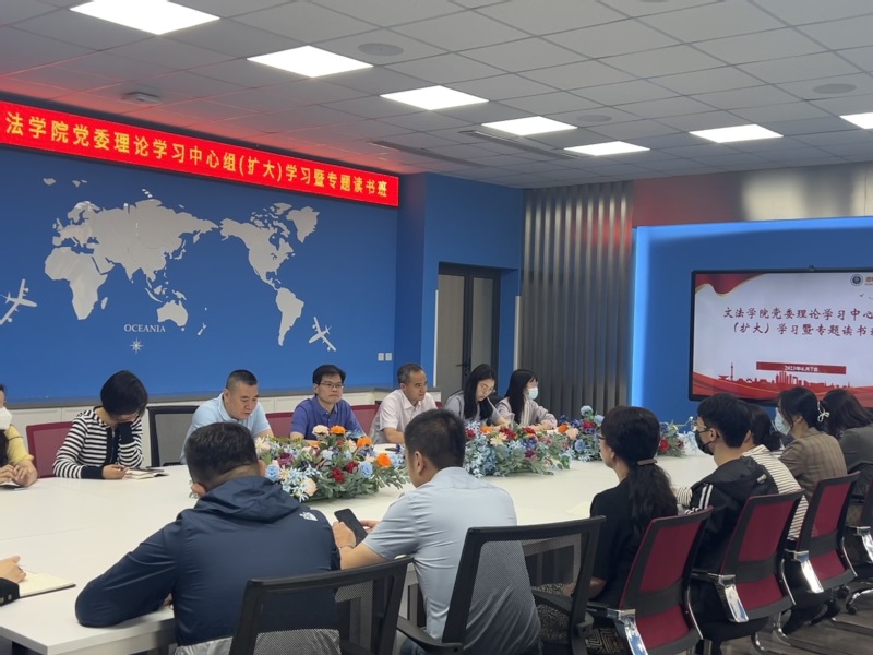 2023年6月7日,文法学院于文管学馆A210开展党委理论中心学习组(扩大)学习暨专题读书班学习,读书班由党委书记隋永强主持,文法学院教授、博士生导师、城乡治理研究院副院长颜德如受邀做读书分享,学院党委委员、纪委委员、师生党支部书记参会。