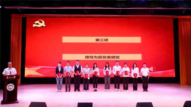 表彰大会在庄严的国歌声中拉开帷幕。文法学院院长张雷宣读表彰决议,姜玉原、张雷、院党委书记隋永强分别为优秀教工党员、优秀学生党员、先进党组织代表和优秀党务工作者颁奖。获奖教师代表院务委员、土地资源管理系主任吕晓,获奖学生代表文硕2102党支部张亚楠分别上台发言。